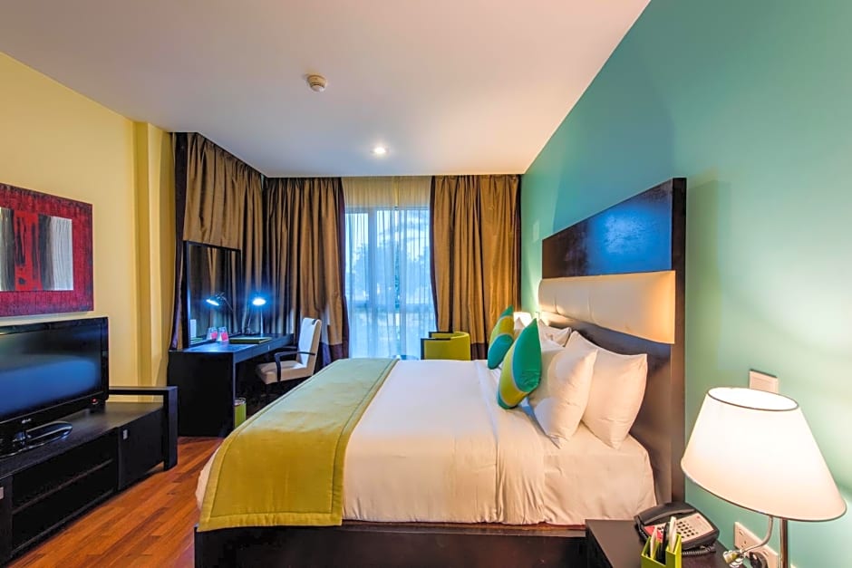 One Bed Room King Downtown View is 807 square feet and includes a king-size bed 150-183 width plus balcony, extra beds on demand, desk, cable tv, hairdryer, tea and coffee making facilities , ironing set, safe, bathrobes, and slippers.